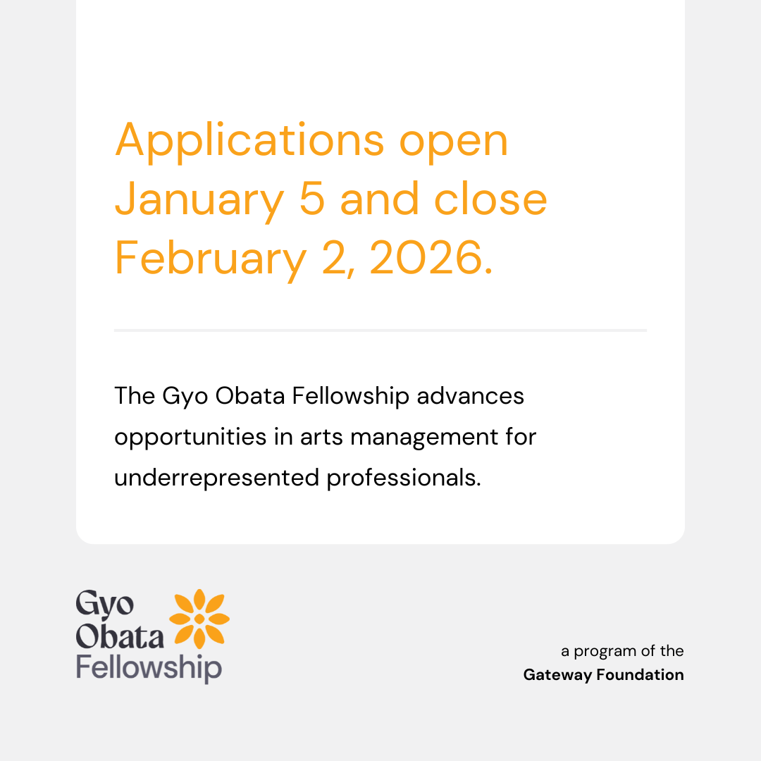 The Gyo Obata Fellowship strives to create opportunities for more diverse, inclusive, and equitable access to the arts community as a whole, and specifically, in the fields of arts administration and management.